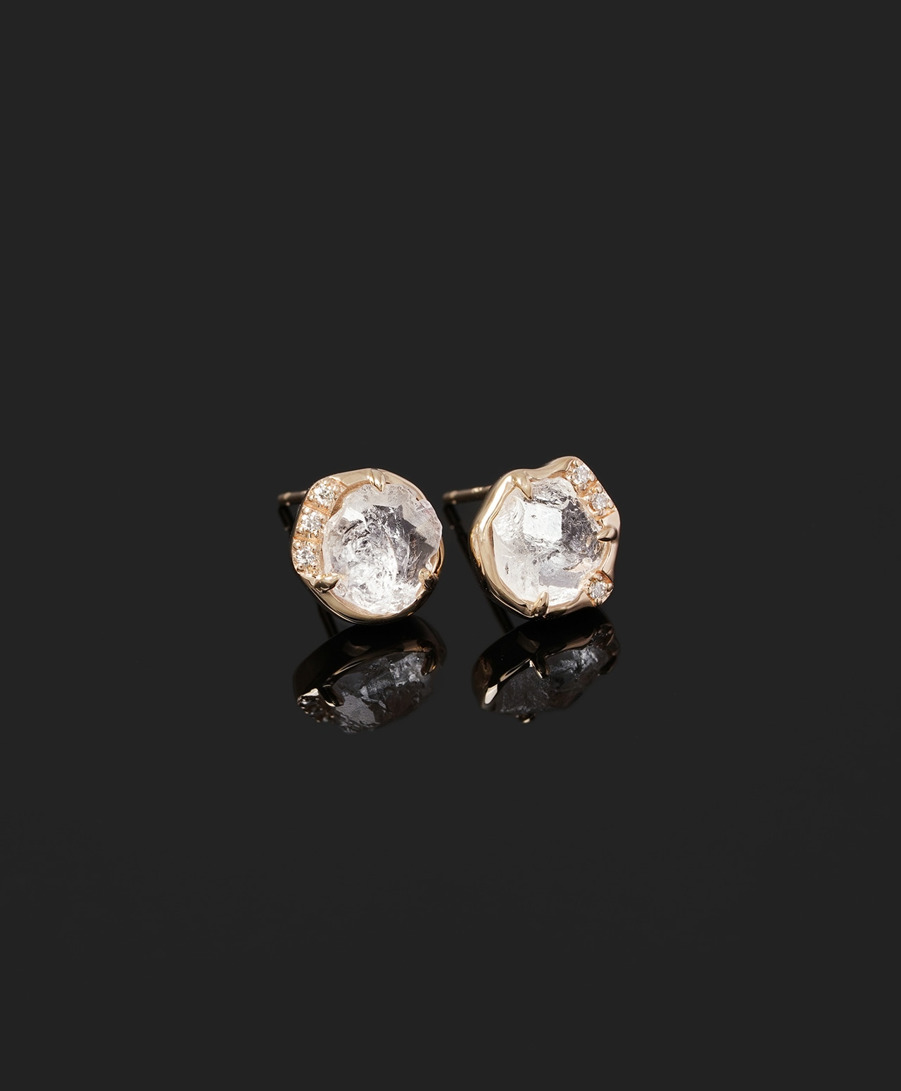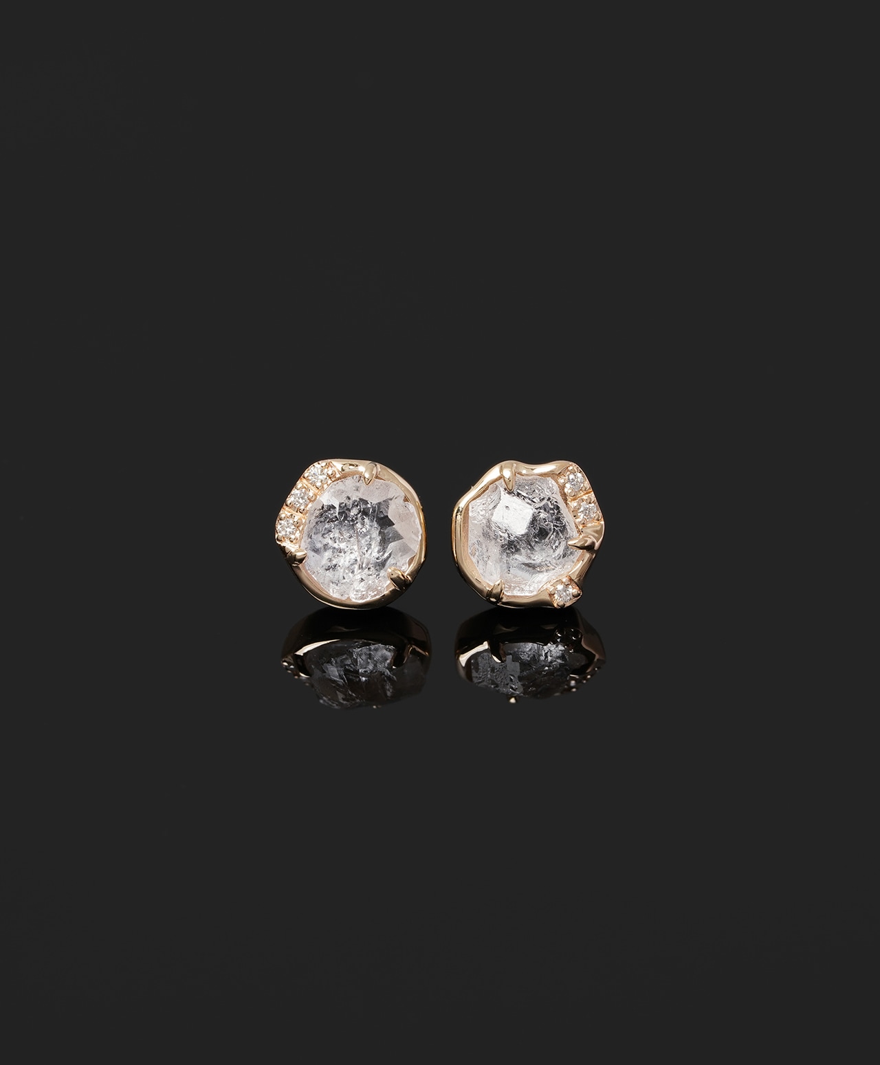 特に珍しいロシア(マリシェボ)産のエレスチャルタイプの原石とダイヤモンド(クリア)を組み合わせて、1点もののピアスにしました。