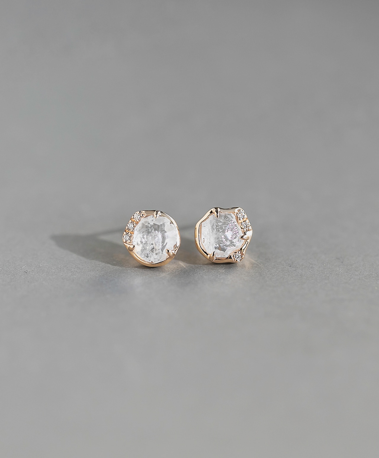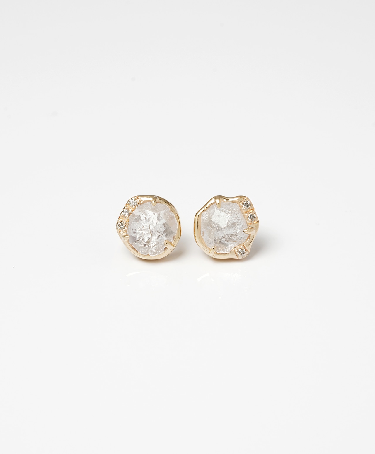 氷河の欠片のような原石の形をそのまま生かしたジュエリーに。原石と馴染むよう、石座はあえてアシンメトリーに仕立てました。