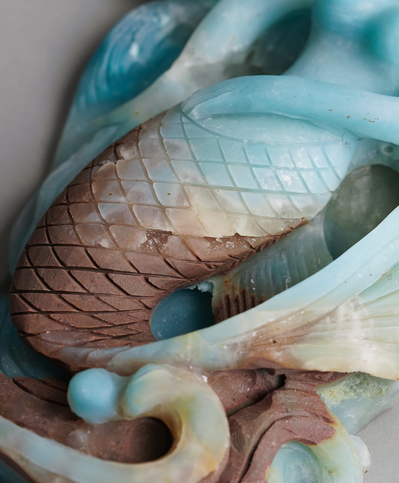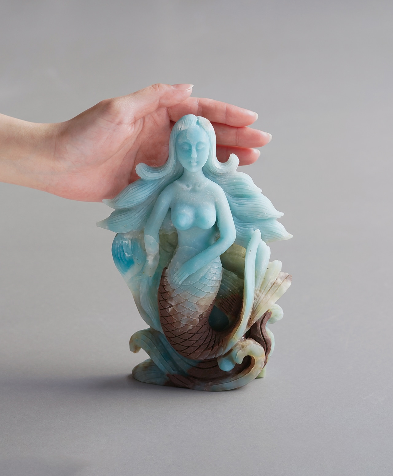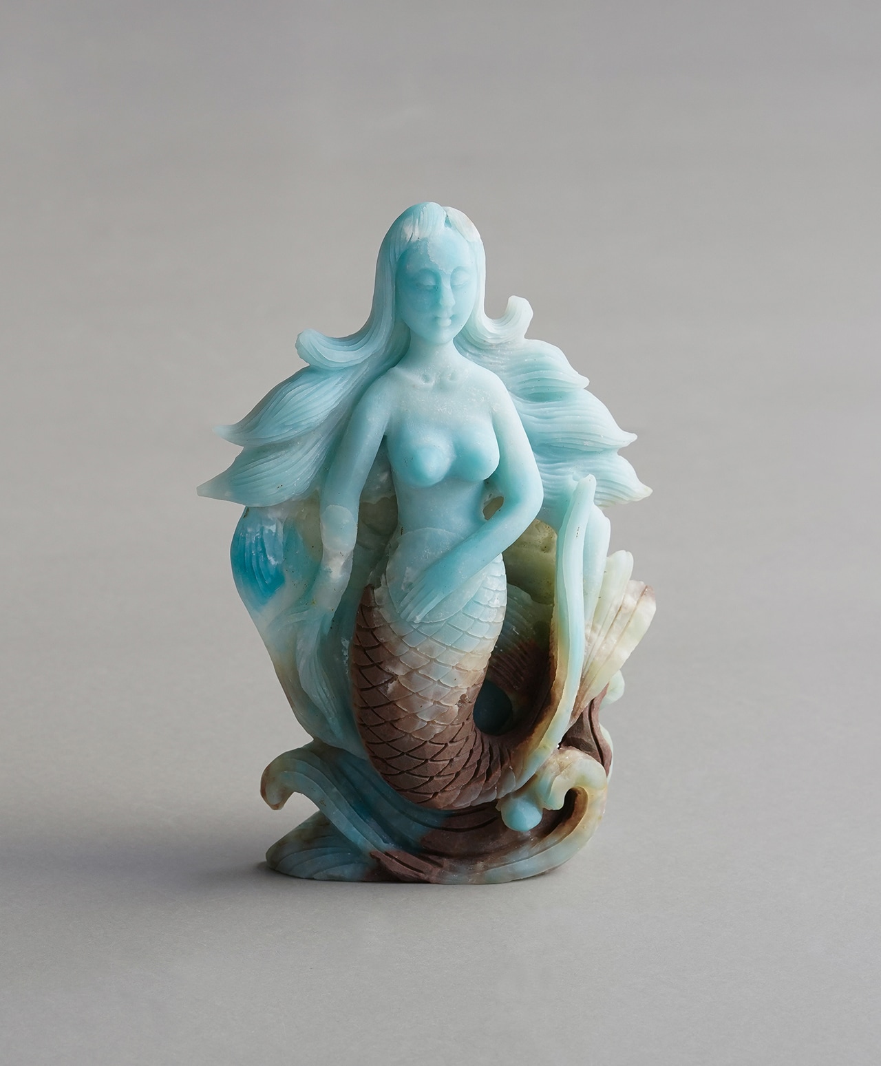 マダガスカル産アマゾナイトから象られた美しい人魚像。