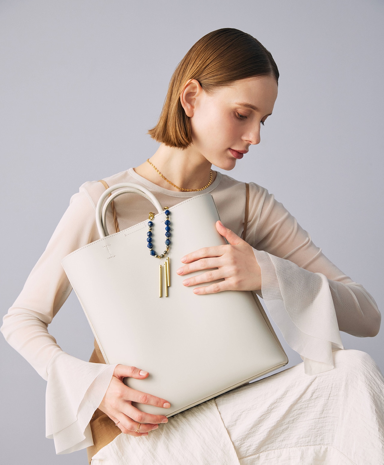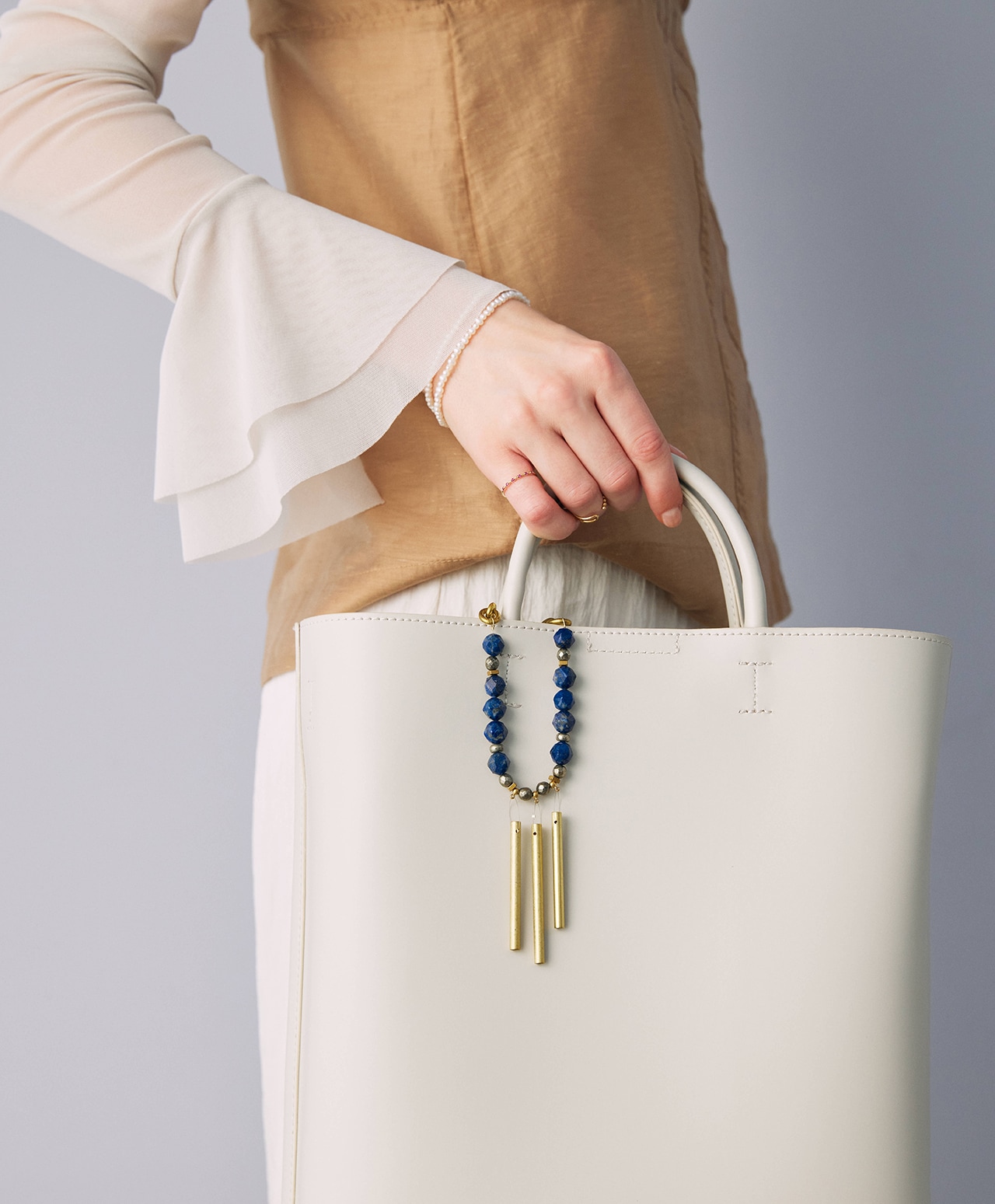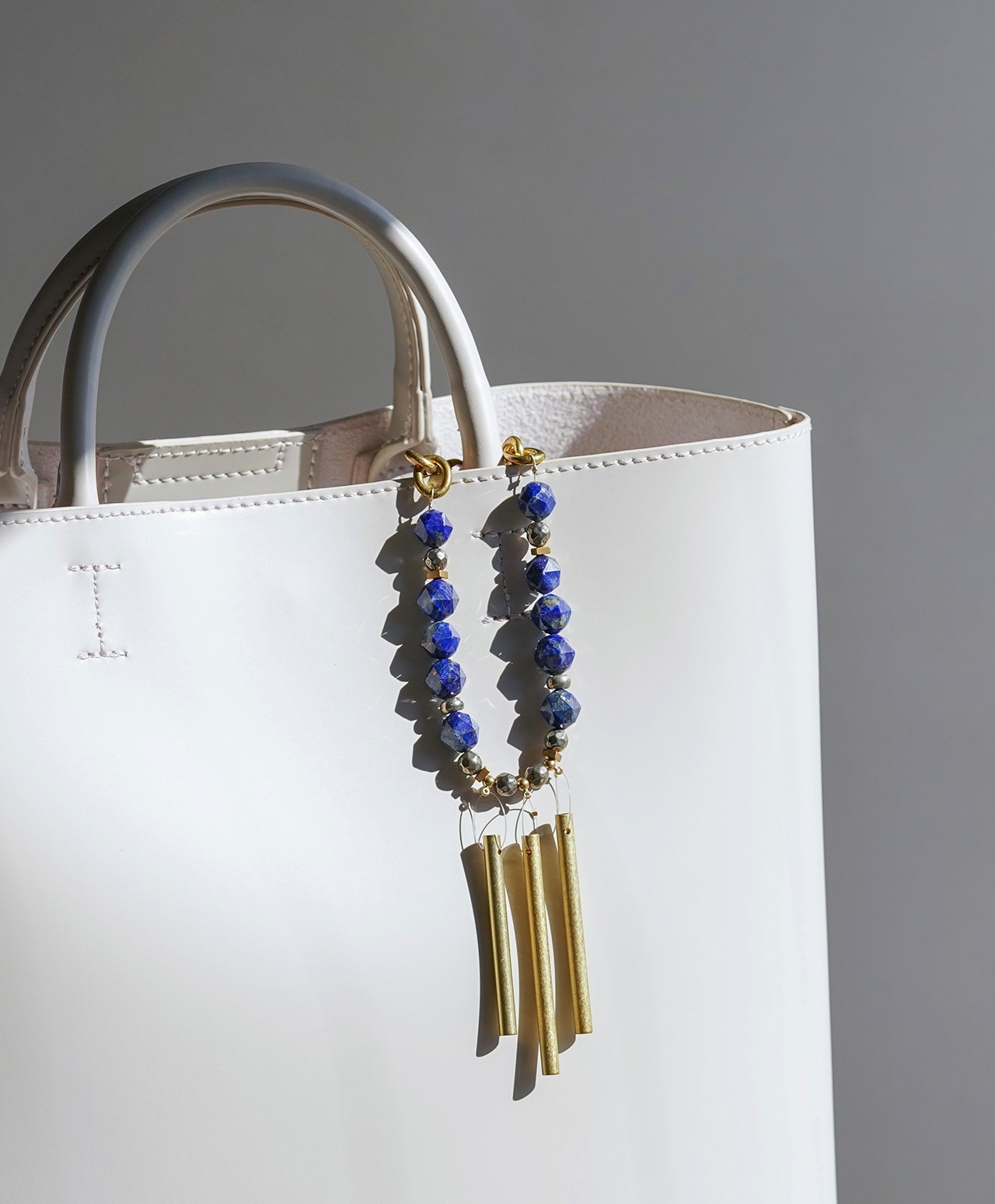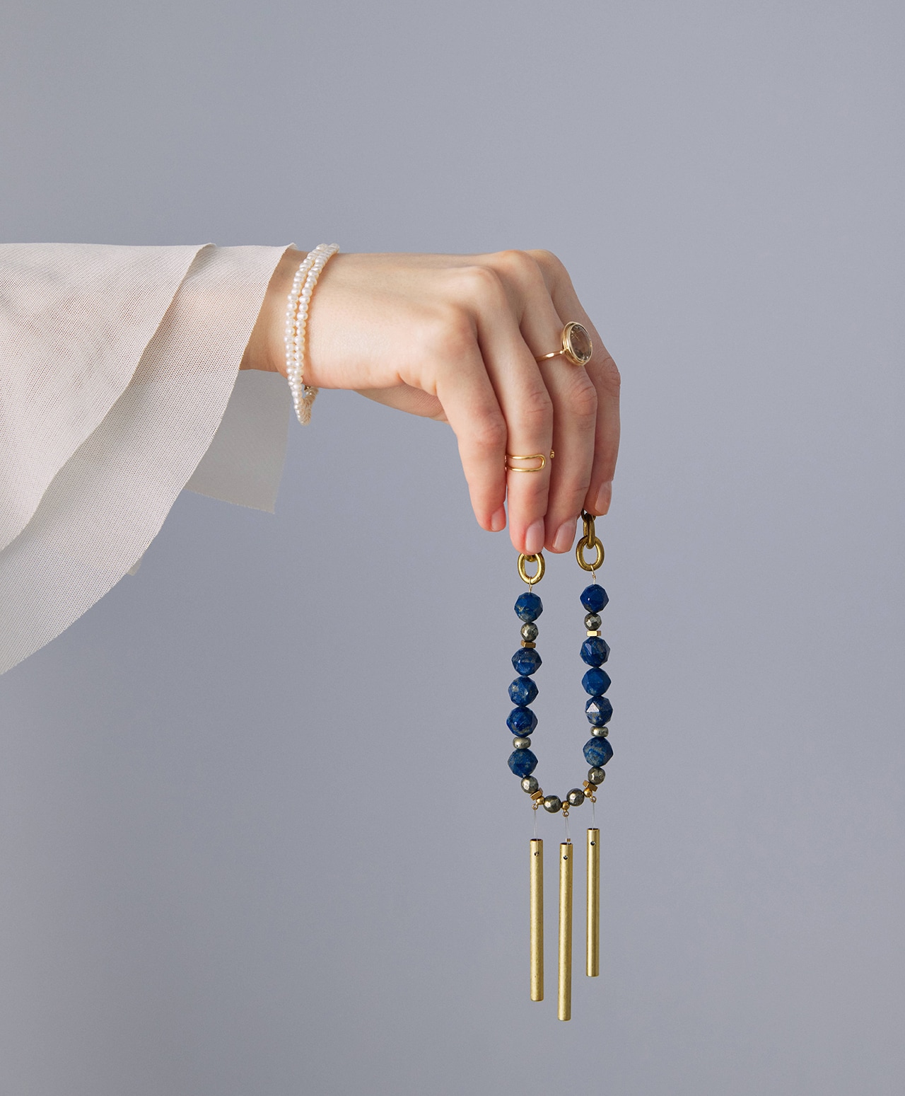 高貴な青と金のチャームがバッグを彩りながら、必要なときに澄んだ音色が空間と心を静かに調律してくれるでしょう。