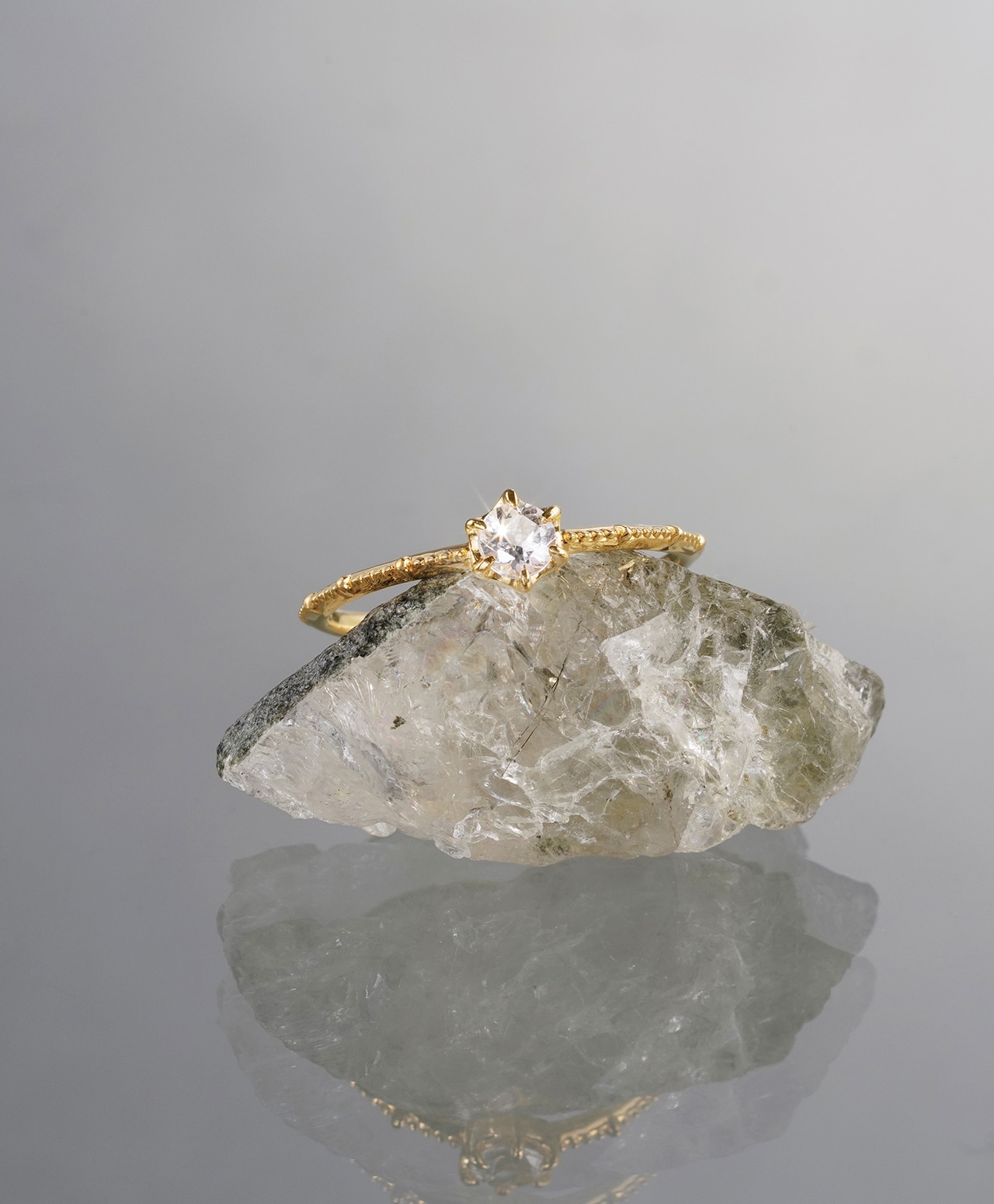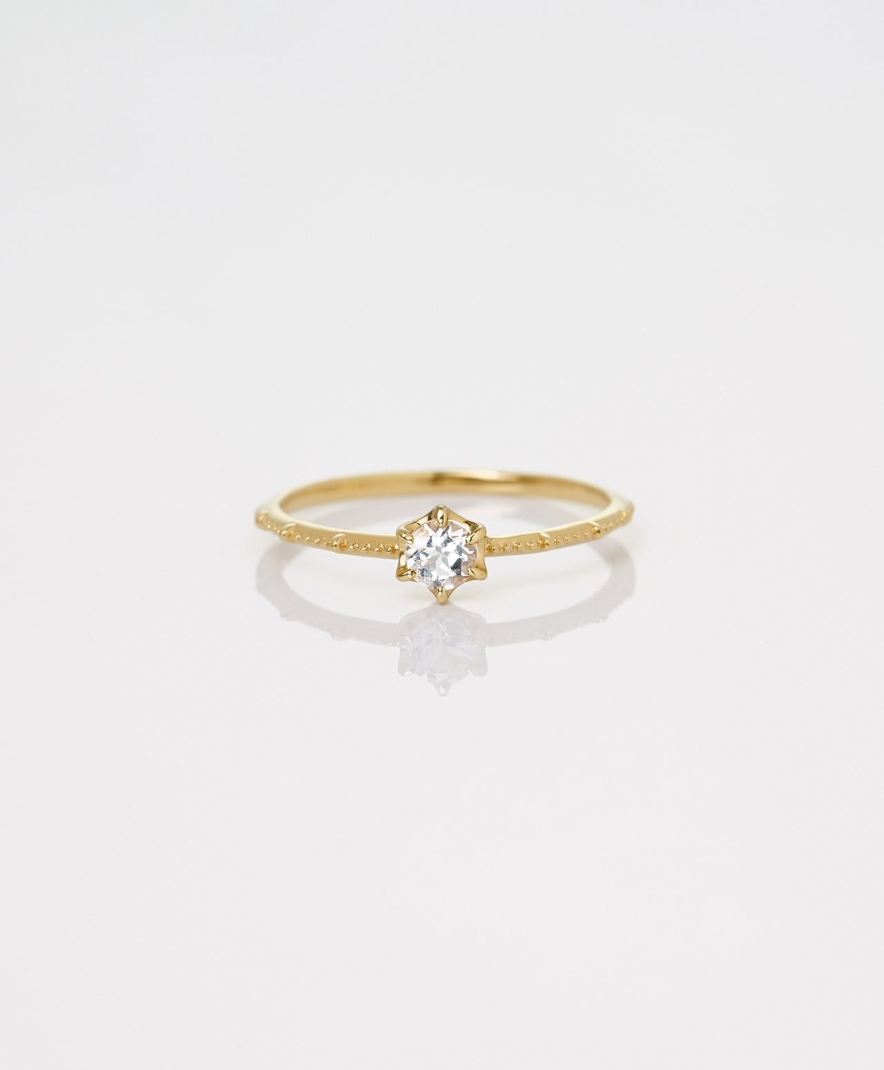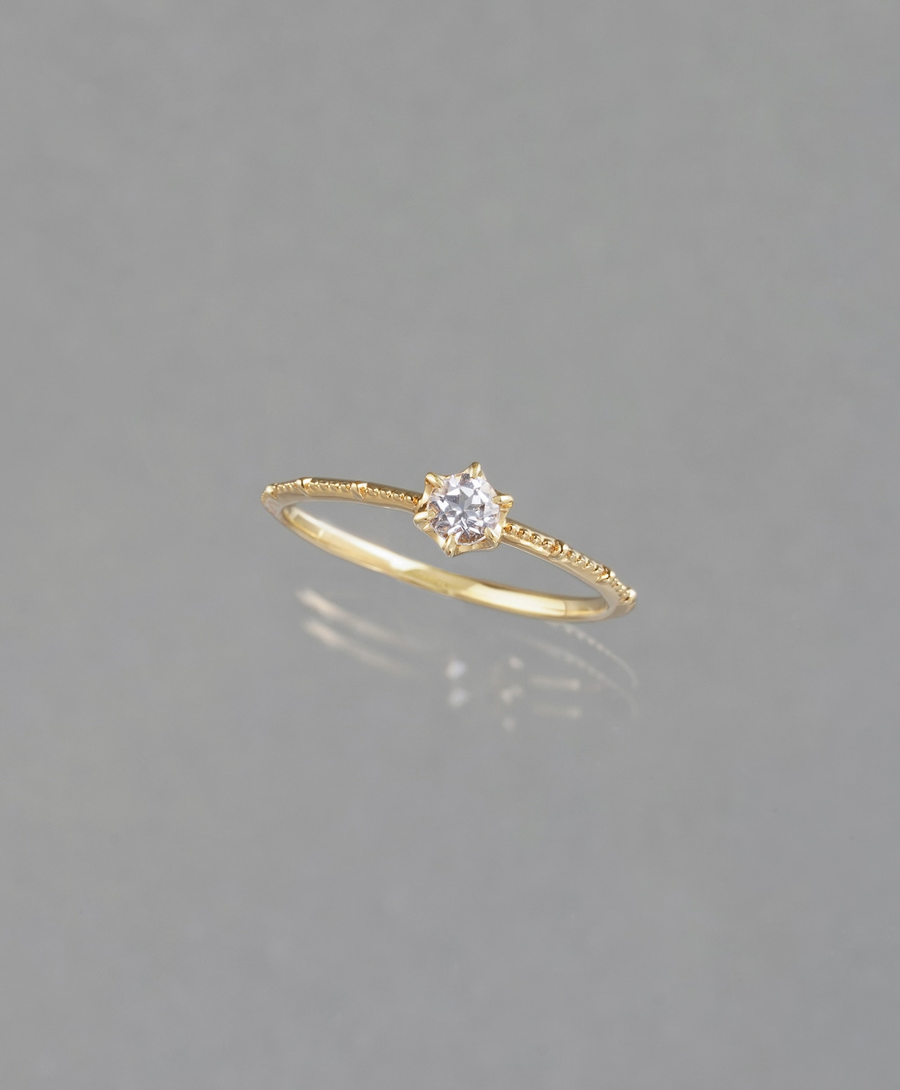 六芒星に合わせたのは、繊細なミルグレイン。スピリチュアル的な意匠が、日常に使用するジュエリーとしても調和するようデザインしました。