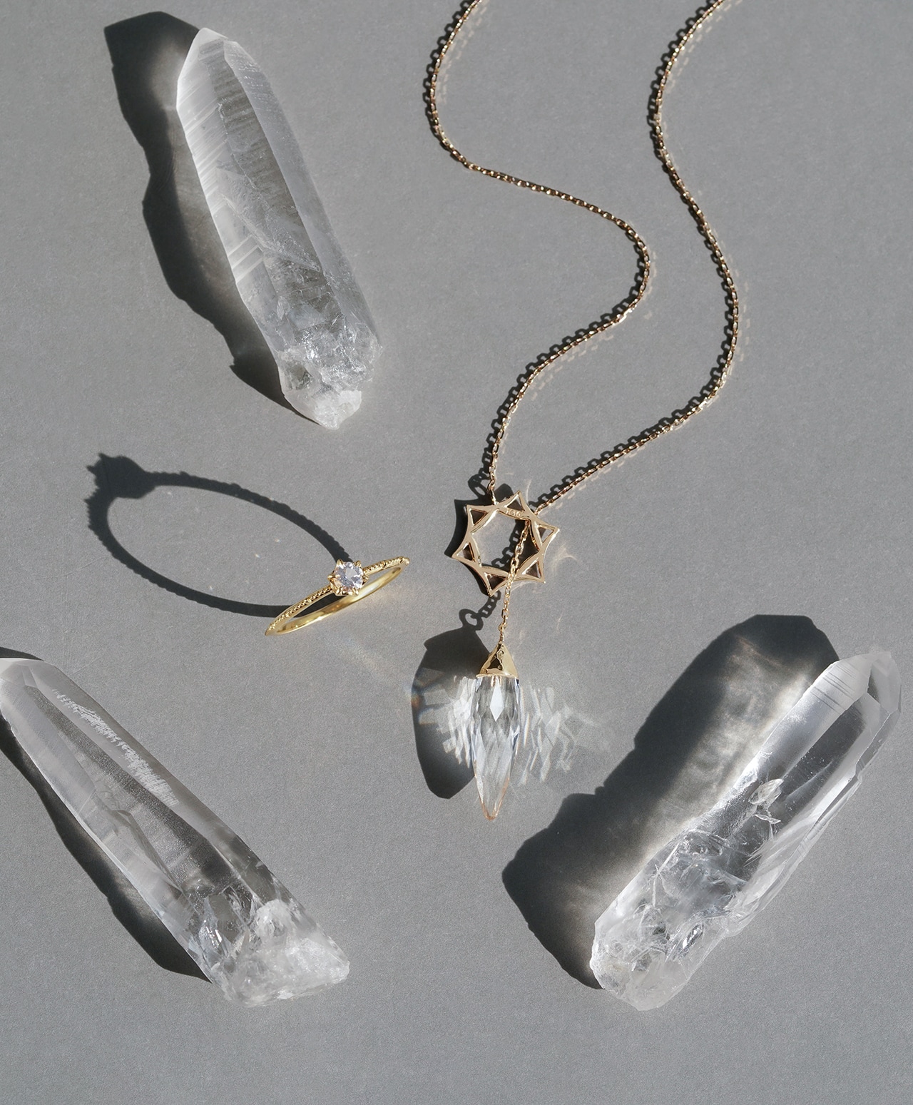 異なる層を統合するシンボルとして、六芒星の枠に象られたクリスタルは、原石の透明度の高い結晶と細やかな研磨により、光に照らされるとキラキラと輝きます。
