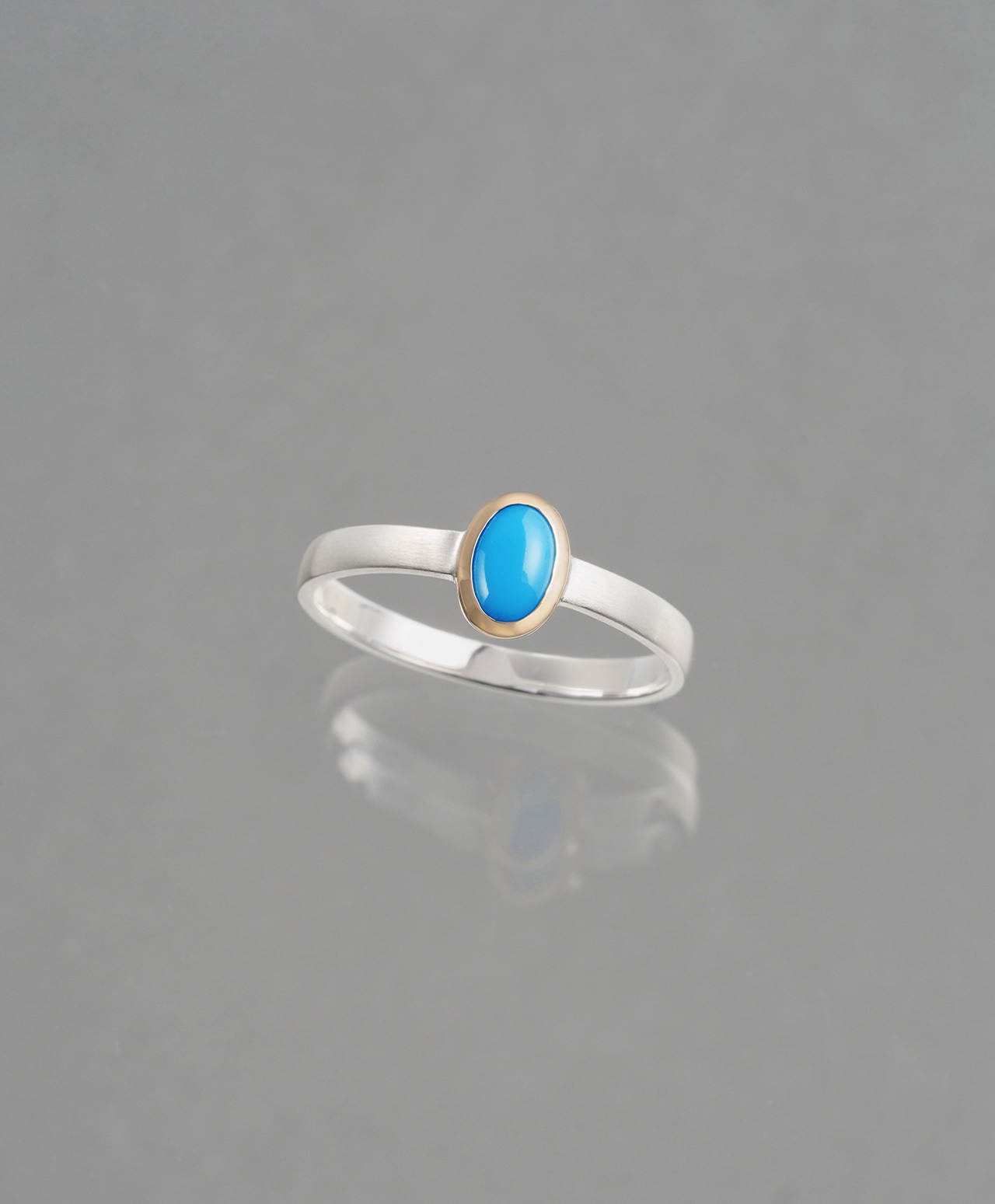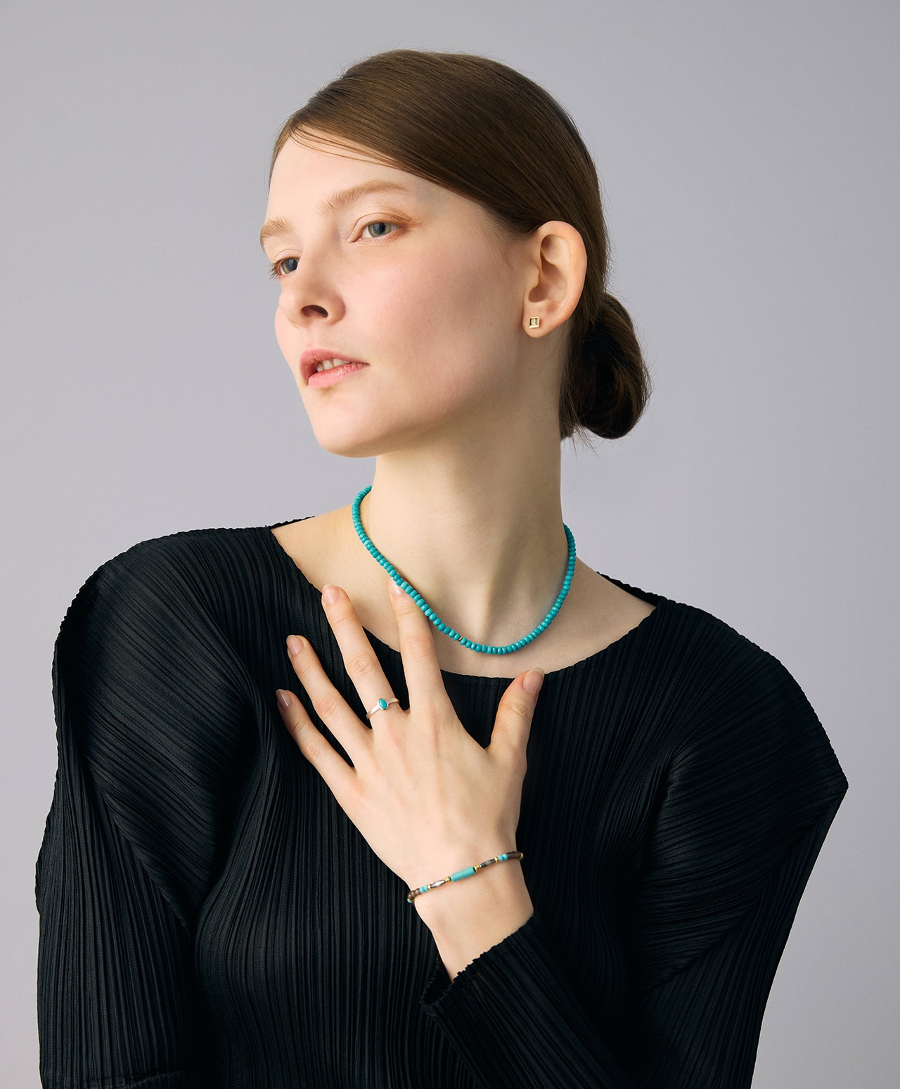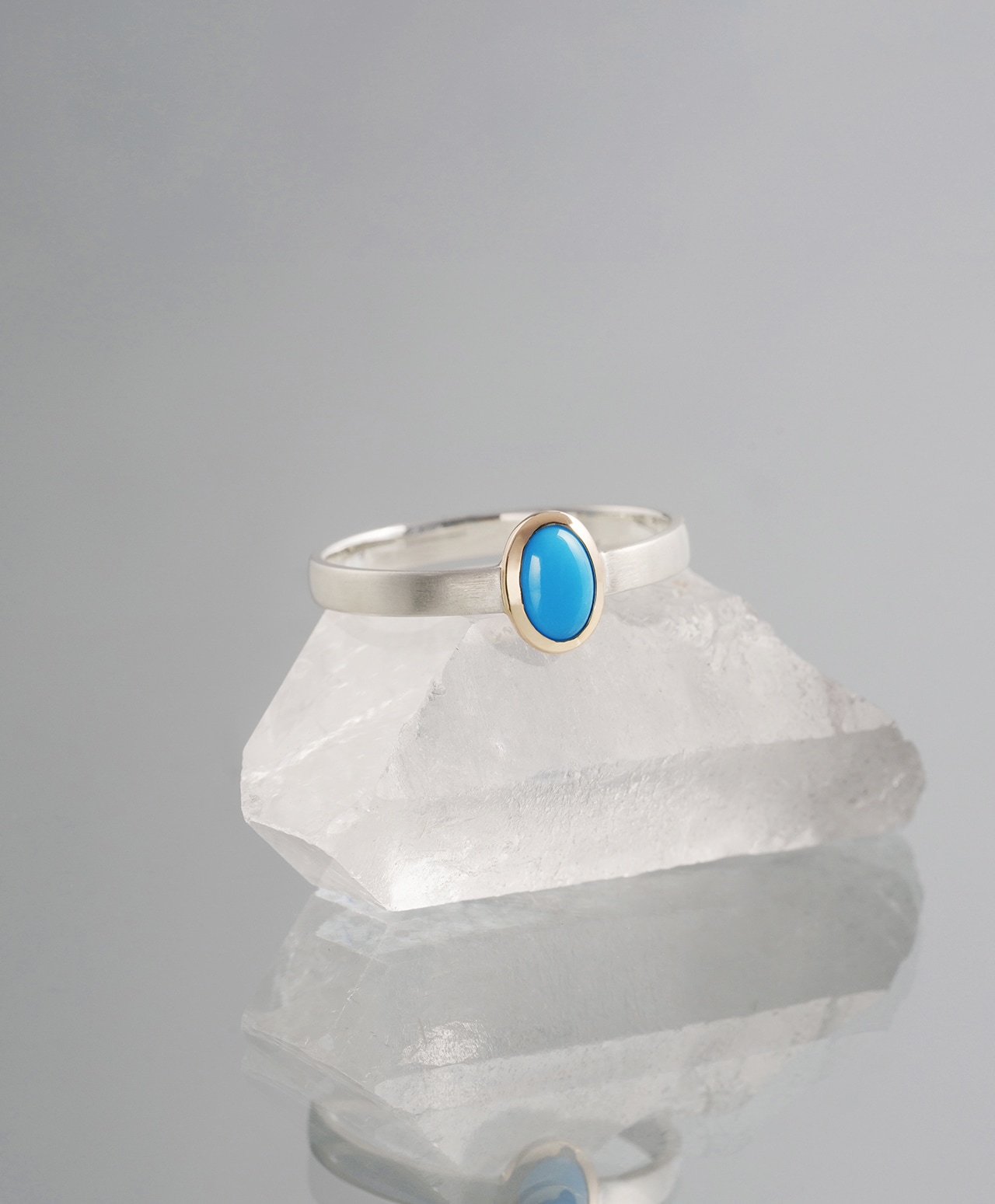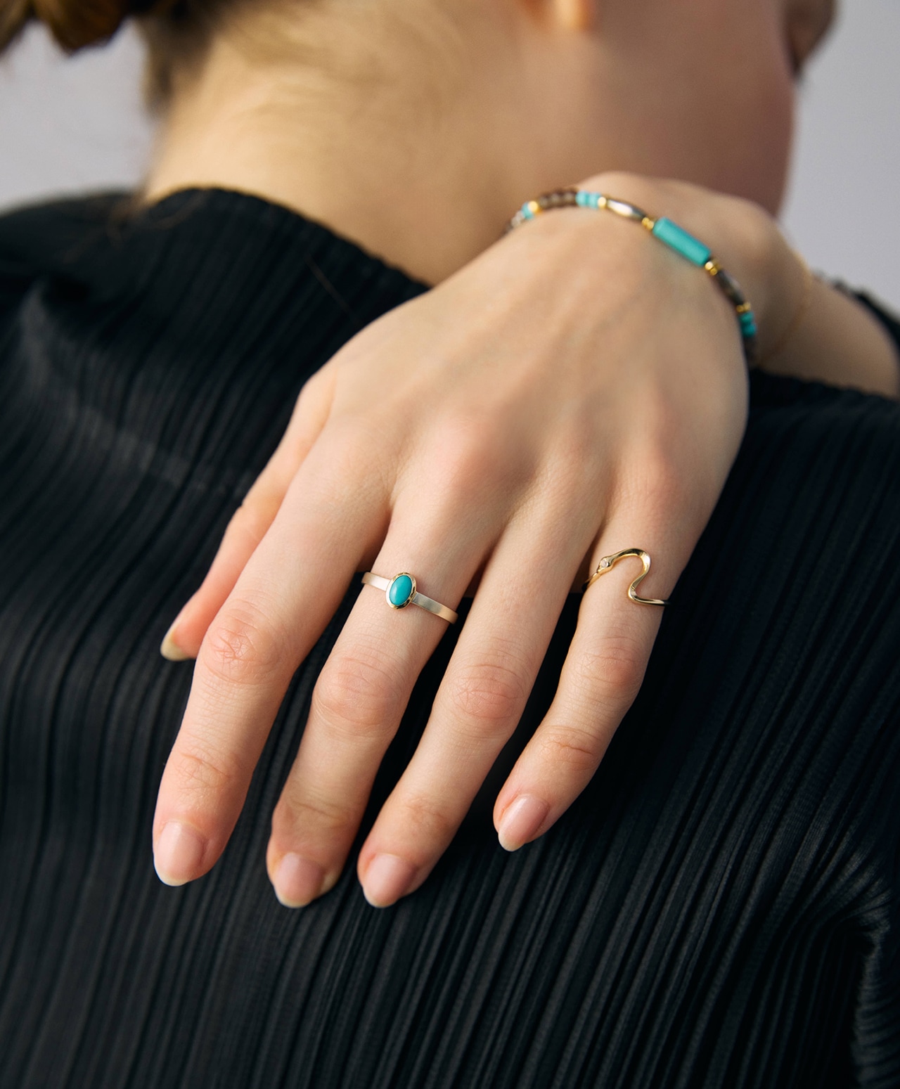 今回はその希少なターコイズを、現代の女性が日常の中で心地よく身につけられるよう、ミニマルなデザインのリングに仕立てました。