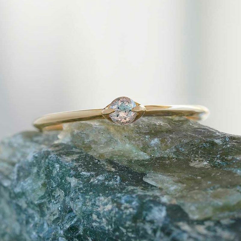 保護フィールドに包まれ、悪や負のエネルギーは跳ね返せるように Pink labradorite round pinky ring /ラブラドライト